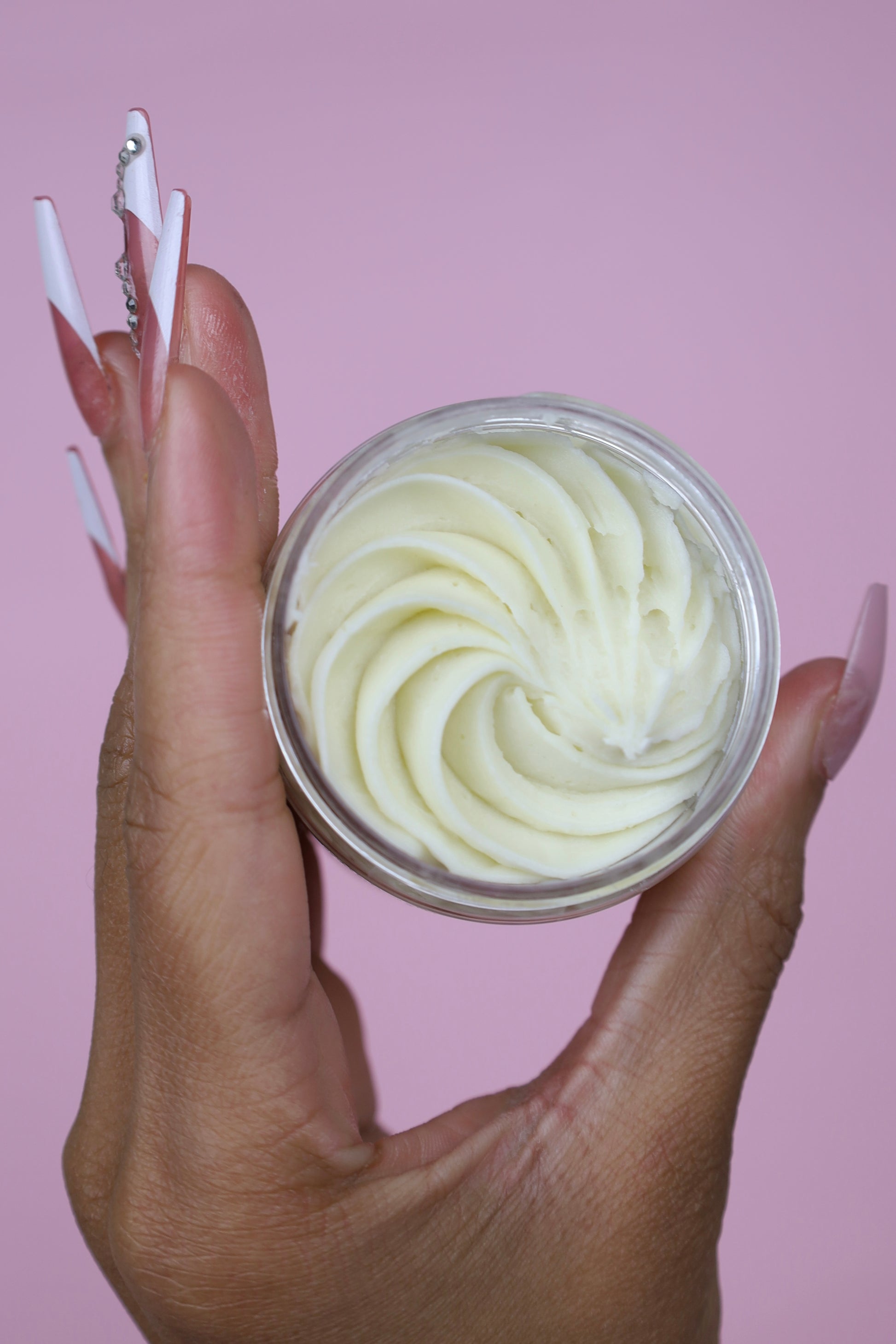 Ingredients: Shea Butter, Grapeseed Oil, Vitamin E Oil, Fragrance oil, Mica, Coconut Oil